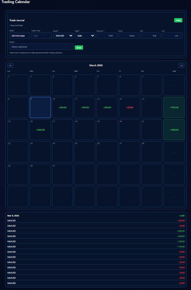 Track your daily gains and losses and identify patterns in your trading behavior.